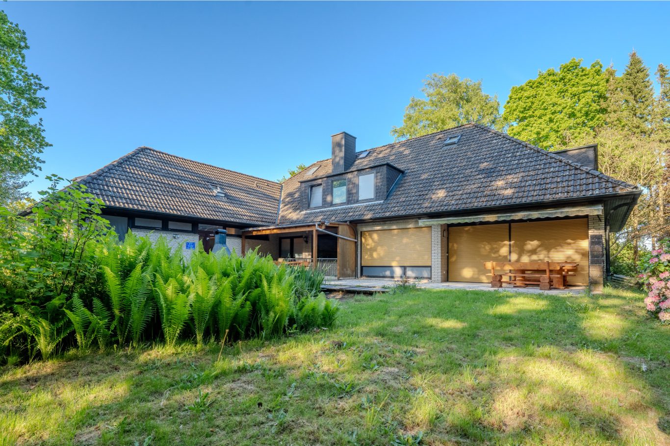 Dieses großzügige Ensemble aus dem Jahr 1969 vereint ein klassisches Einfamilienhaus (hälftiger Anteil) mit einem charmanten Hotel Garni samt kleinem Restaurant. Eingebettet in ein 2.618 m² großes Grundstück mit hochwertigem Baumbestand und kleinem Teich eröffnet sich Ihnen hier ein Refugium, das gleichermaßen Ruhe, Naturverbundenheit und wirtschaftliche Perspektiven und zugleich die Nähe zu den Hansestädten Hamburg und Lübeck bietet.